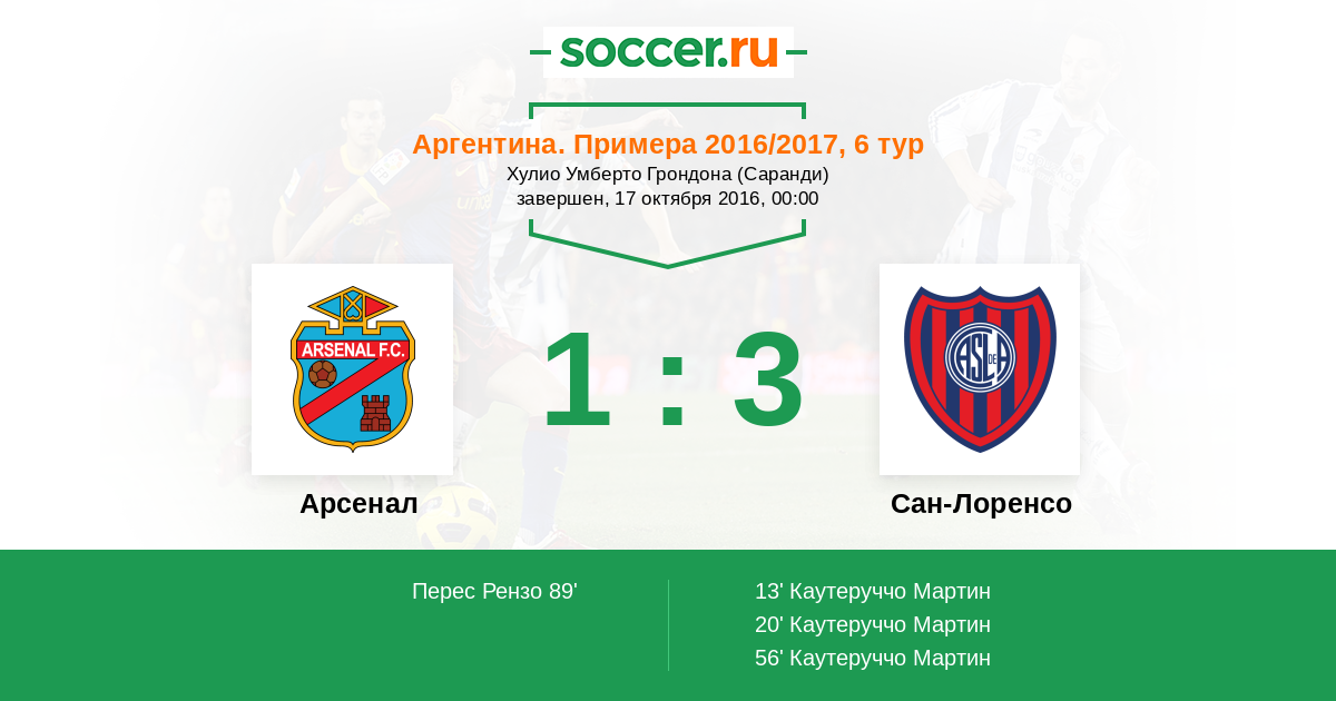 Протокол матча Арсенал против Сан-Лоренсо