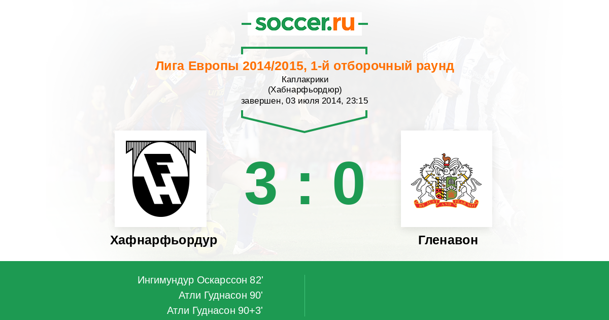 Протокол матча Хафнарфьордур против Гленавон