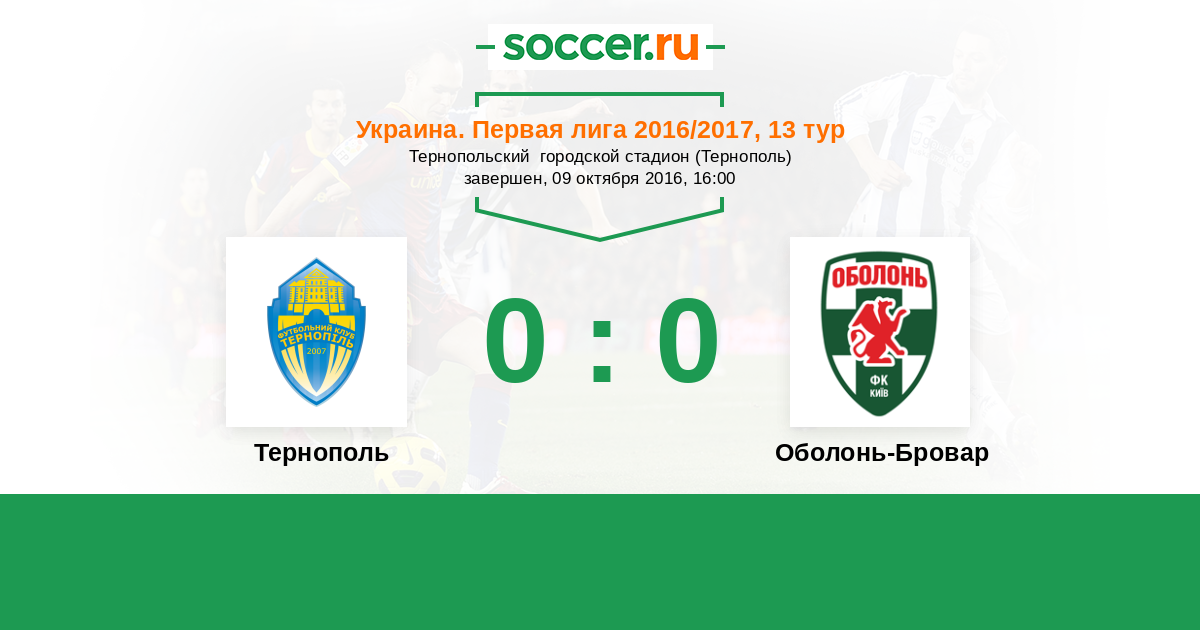 Протокол матча Тернополь против Оболонь-Бровар