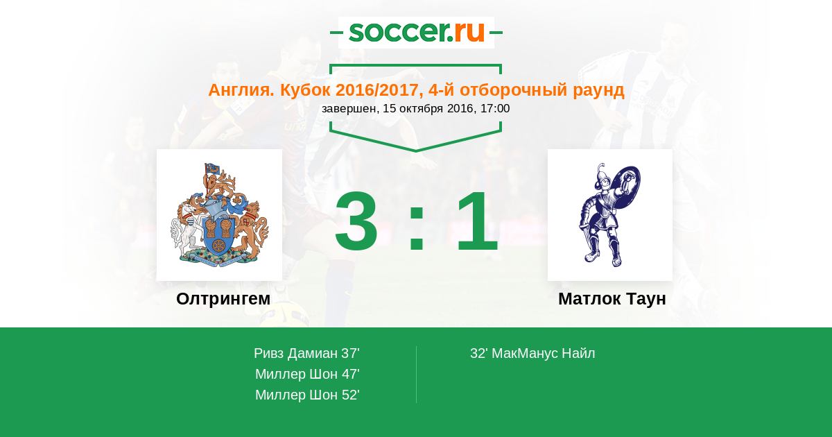 Протокол матча Олтрингем против Матлок Таун