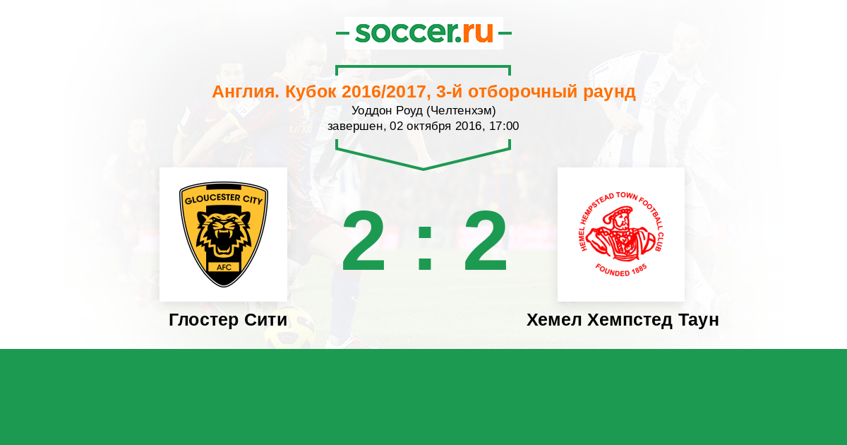 История матча Глостер Сити против Хемел Хемпстед Таун