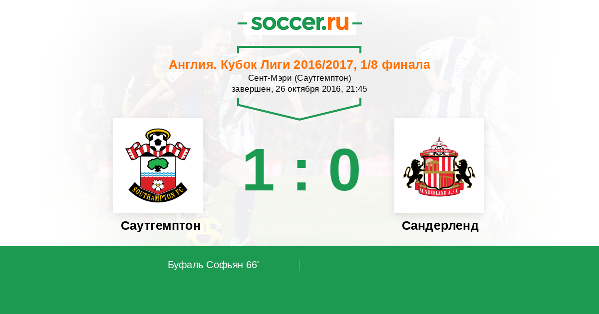 Протокол матча Саутгемптон против Сандерленд