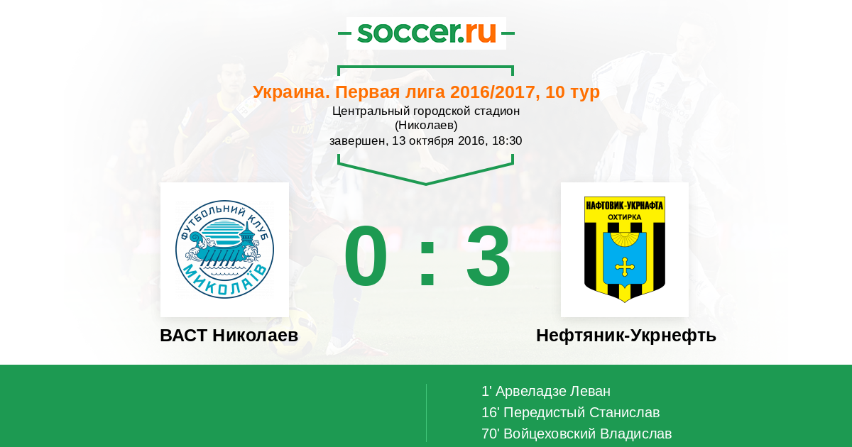 Протокол матча ВАСТ Николаев против Нефтяник-Укрнефть