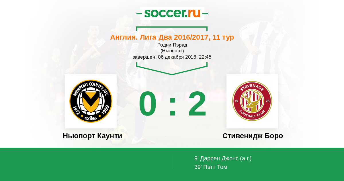Протокол матча Ньюпорт Каунти против Стивенидж Боро