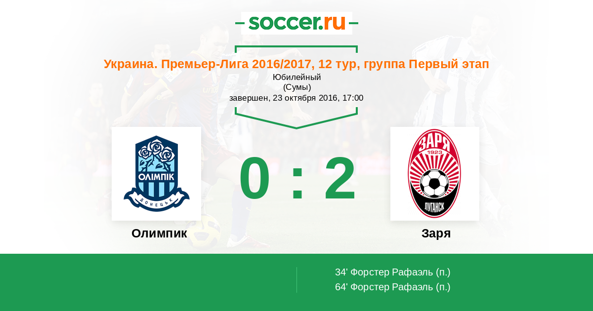 Протокол матча Олимпик против Заря