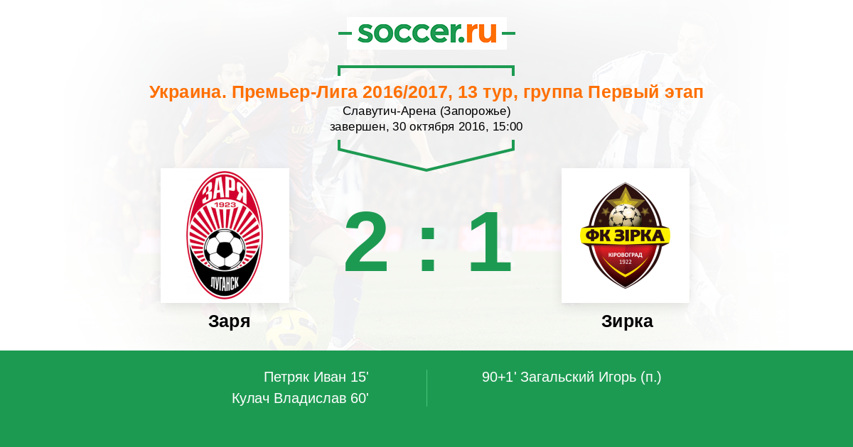 Протокол матча Заря против Зирка