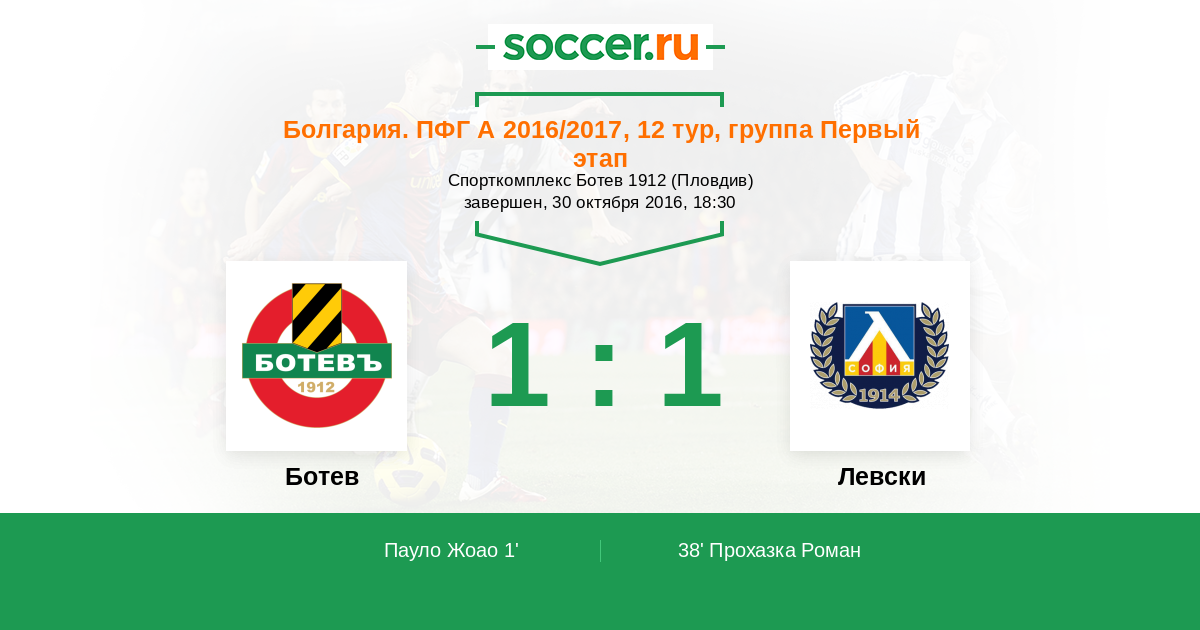 Протокол матча Ботев против Левски