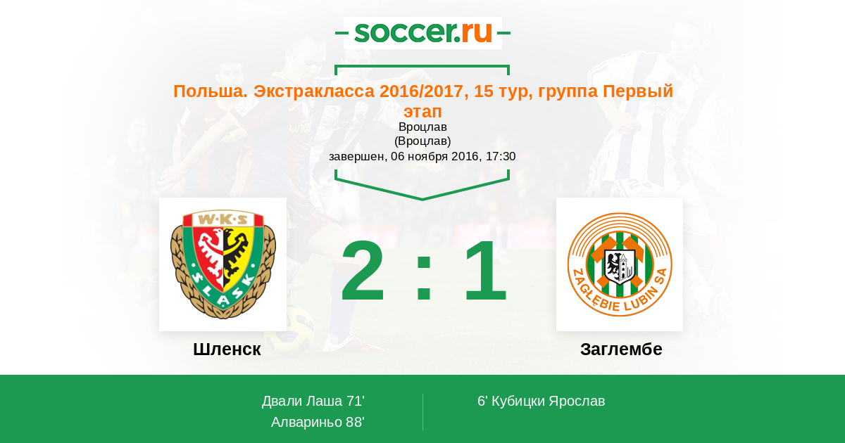 Протокол матча Шленск против Заглембе