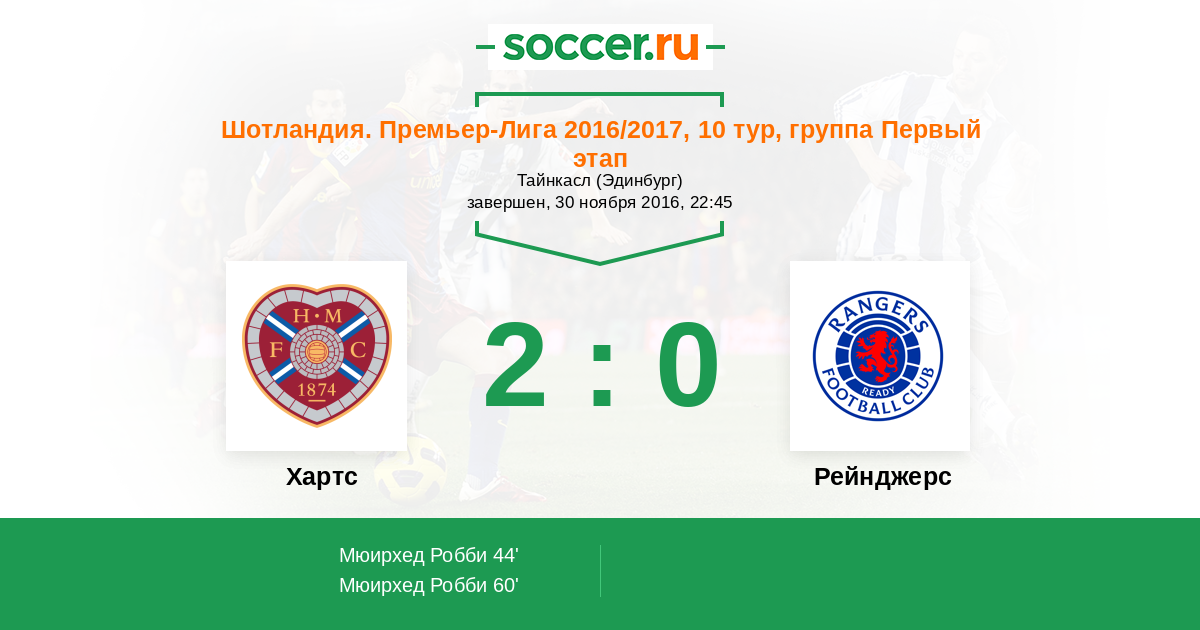 Протокол матча Хартс против Рейнджерс