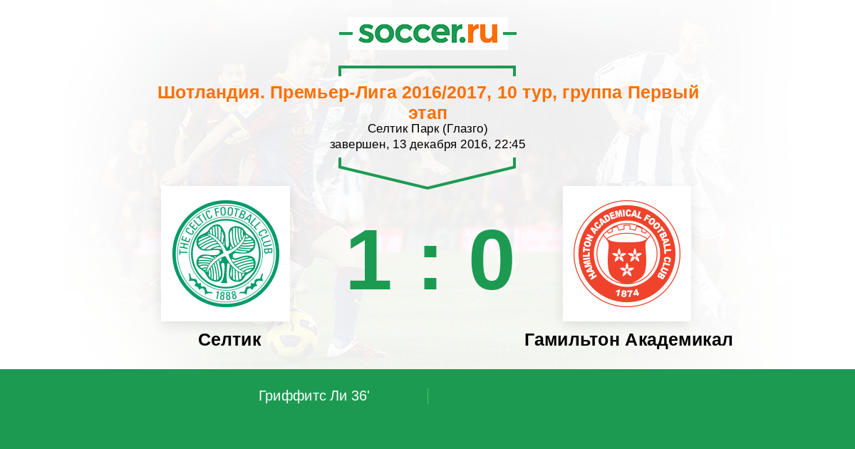 Протокол матча Селтик против Гамильтон Академикал