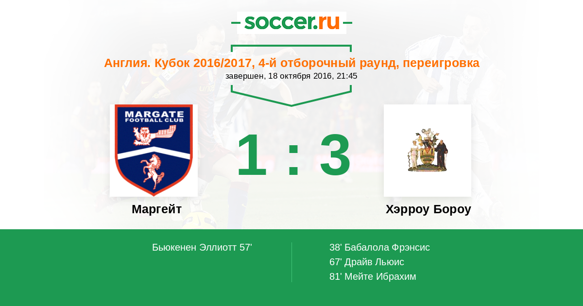 Протокол матча Маргейт против Хэрроу Бороу