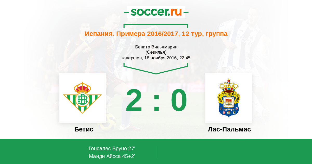 Протокол матча Бетис против Лас-Пальмас