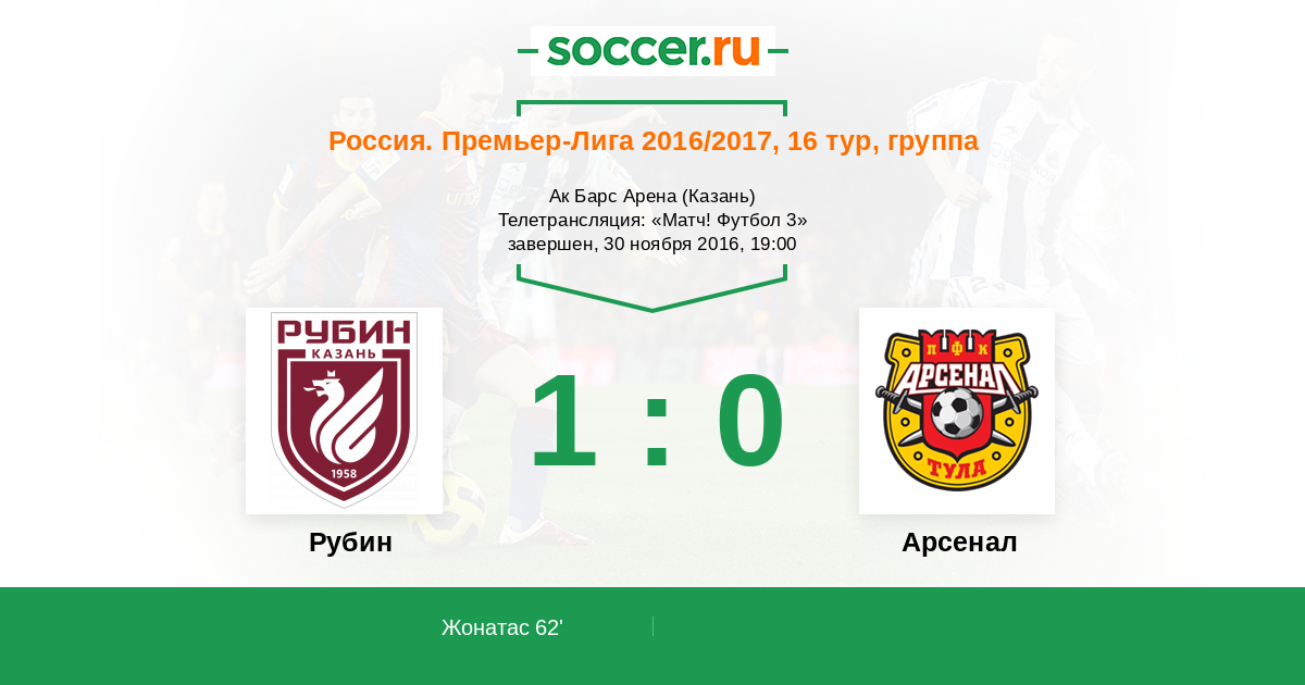 Протокол матча Рубин против Арсенал