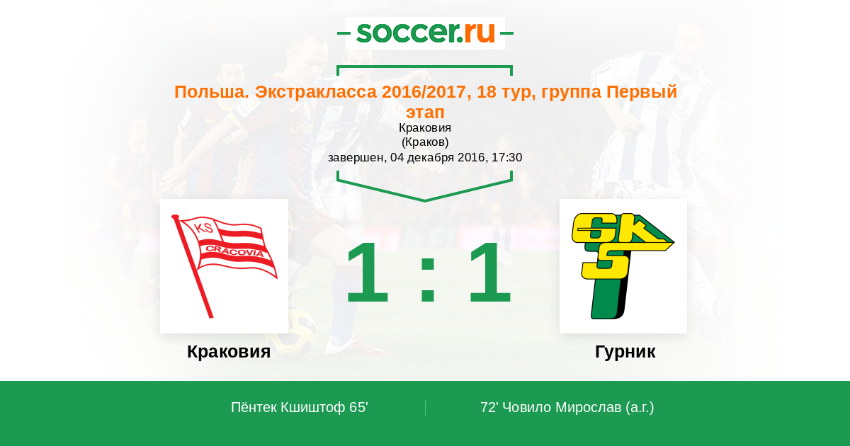 Протокол матча Краковия против Гурник