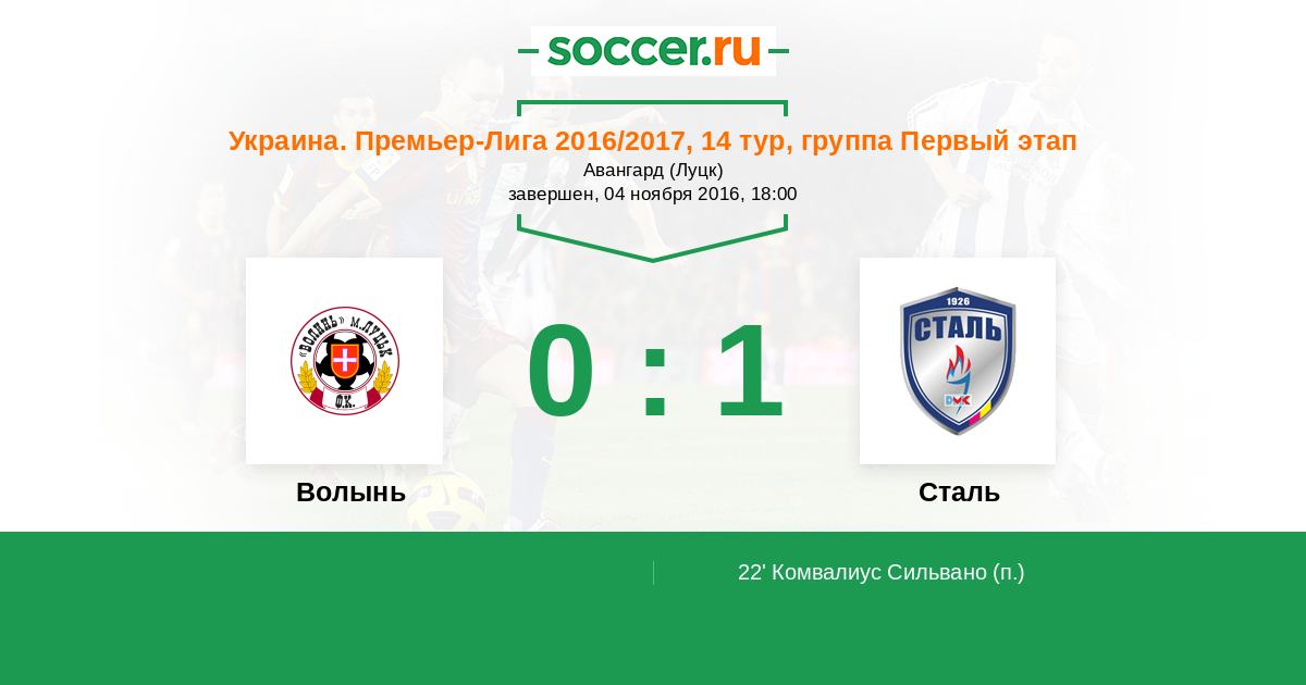 Протокол матча Волынь против Сталь