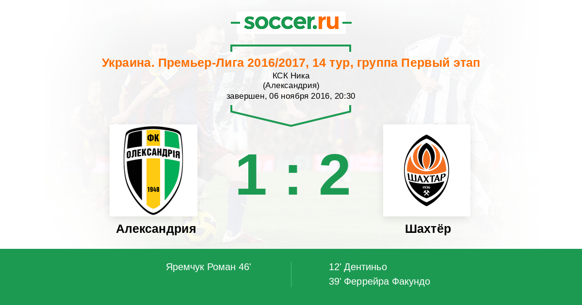 Протокол матча Александрия против Шахтёр