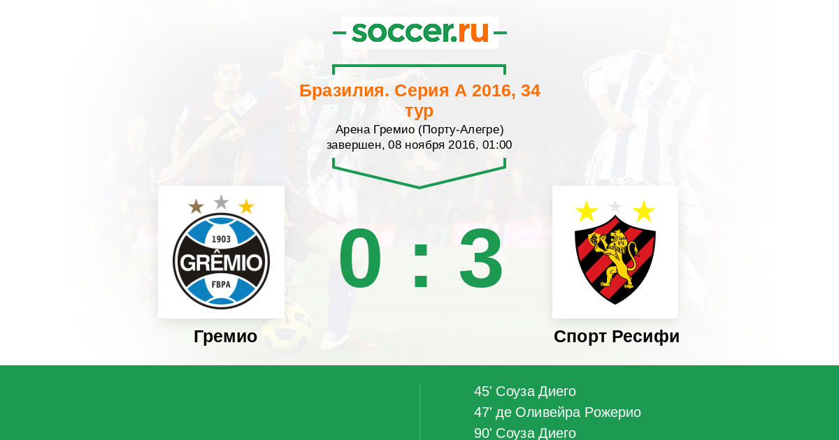 Протокол матча Гремио против Спорт Ресифи