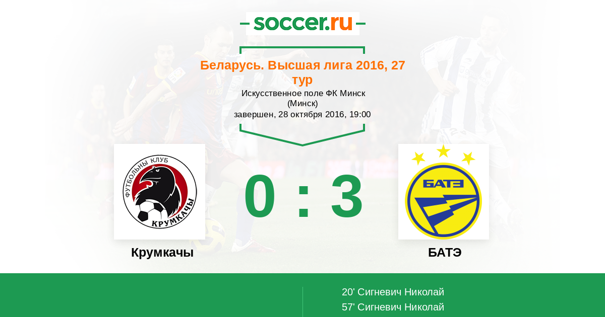 Протокол матча Крумкачы против БАТЭ