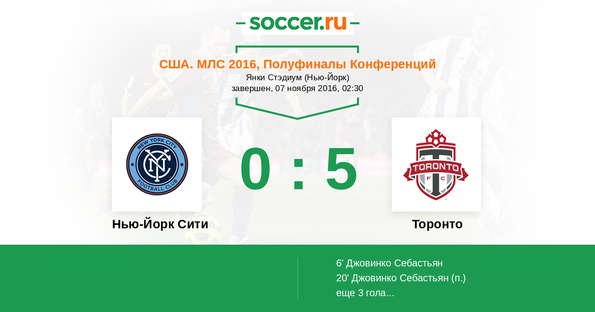Протокол матча Нью-Йорк Сити против Торонто