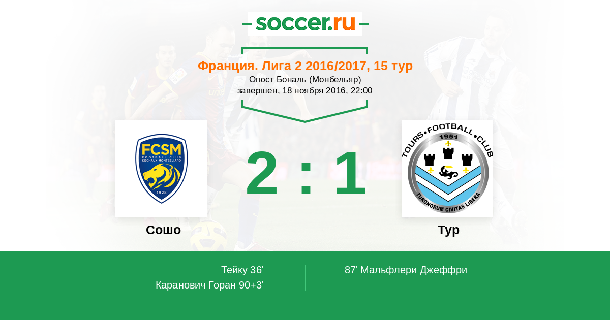 Протокол матча Сошо против Тур