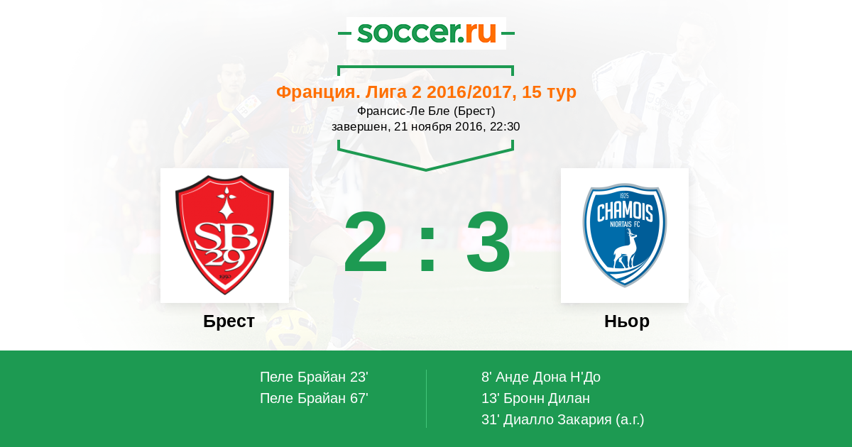 67' (2:3) Пеле Брайан (11) (Фоссурье Жюльен (22))