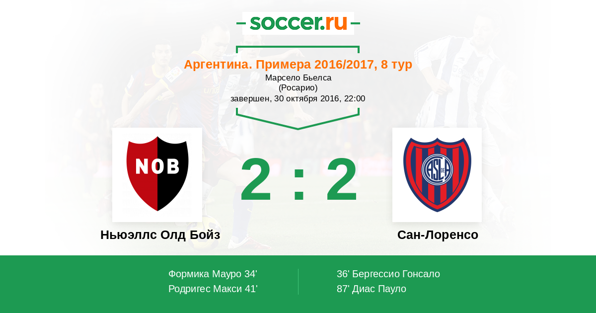 Протокол матча Ньюэллс Олд Бойз против Сан-Лоренсо