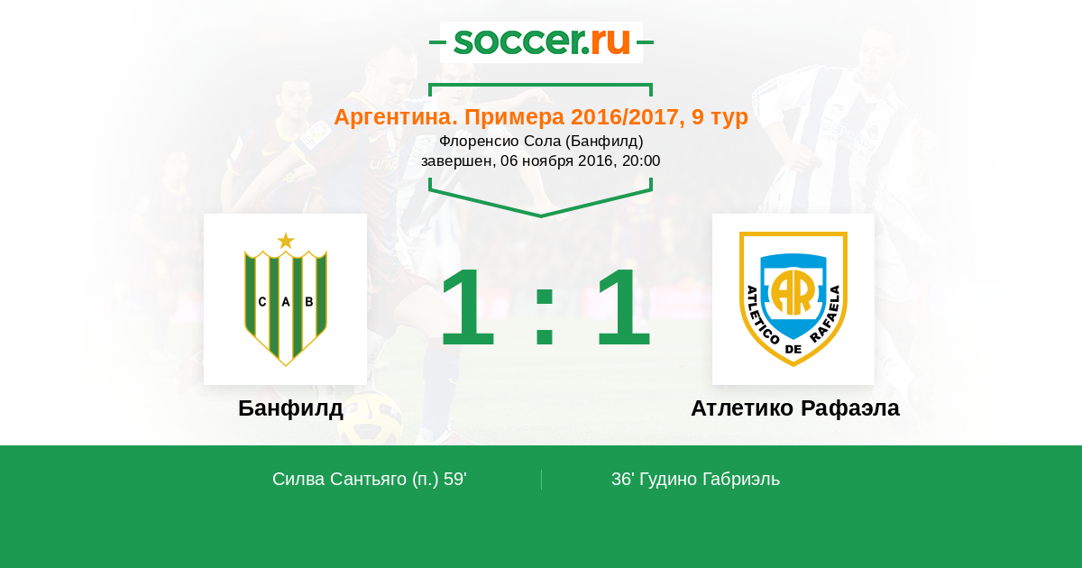 Протокол матча Банфилд против Атлетико Рафаэла