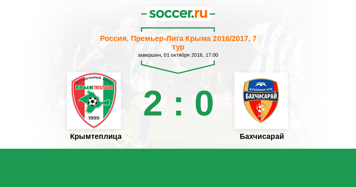 Россия. Премьер-Лига Крыма 20.11.2016 Бахчисарай Логотип футбольный клуб Бахчисарай 0:1 Логотип футбольный клуб Крымтеплица (Молодежное) Крымтеплица