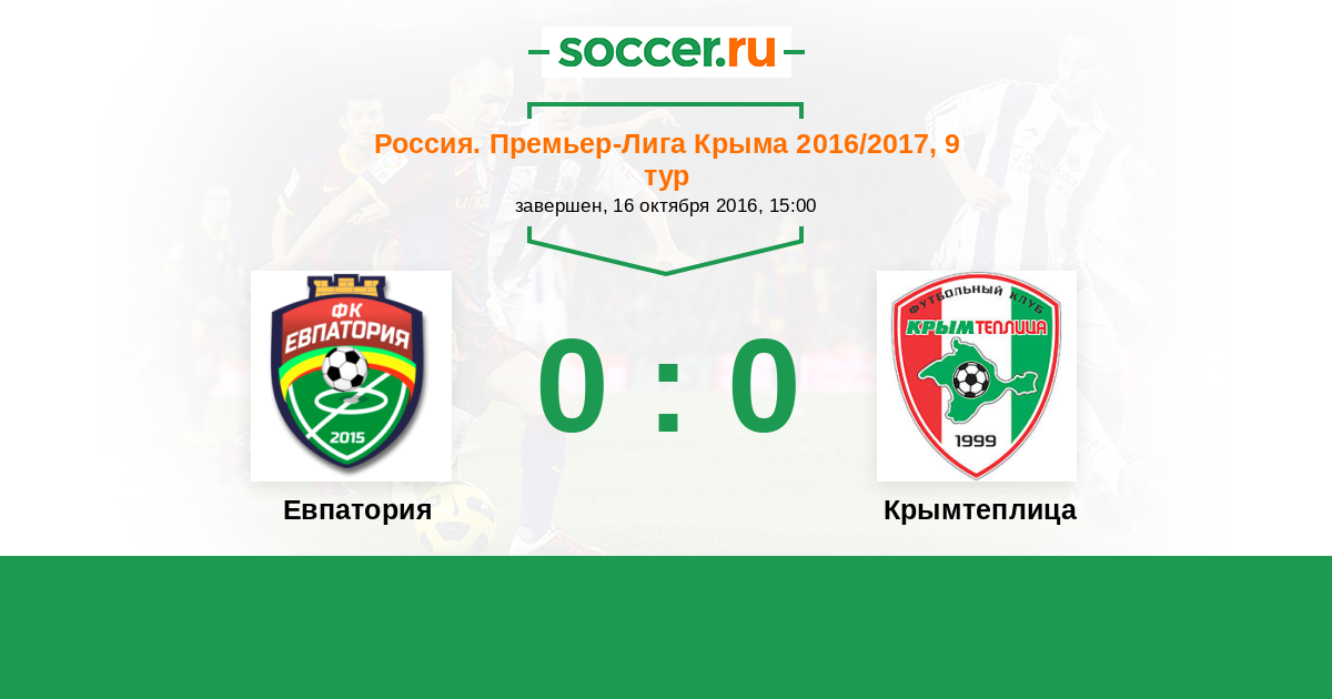 Россия. Премьер-Лига Крыма 27.08.2016 Крымтеплица Логотип футбольный клуб Крымтеплица (Молодежное) 3:0 Логотип футбольный клуб Евпатория Евпатория
