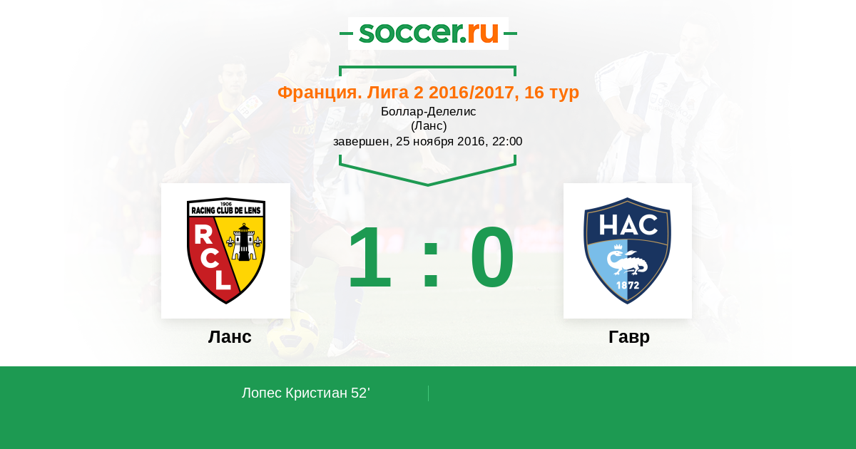 Протокол матча Ланс против Гавр
