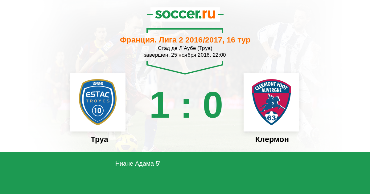 Протокол матча Труа против Клермон