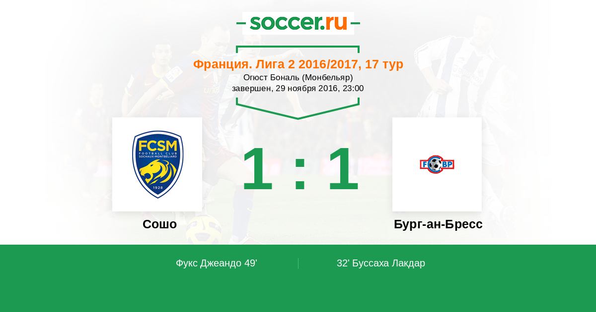Протокол матча Сошо против Бург-ан-Бресс