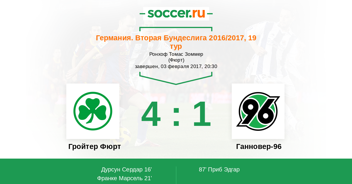 Протокол матча Гройтер Фюрт против Ганновер-96