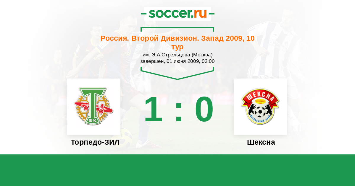 Россия. Вторая лига. Группа 2 19.07.2010 Шексна Логотип футбольный клуб Шексна (Череповец) 1:1 Логотип футбольный клуб Торпедо-ЗИЛ (Москва) Торпедо-ЗИЛ
