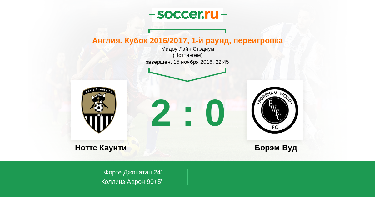 Протокол матча Ноттс Каунти против Борэм Вуд