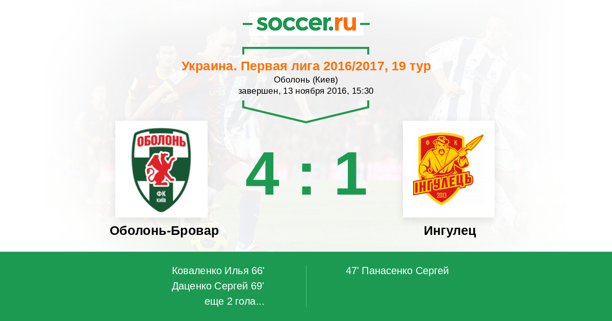 Протокол матча Оболонь-Бровар против Ингулец
