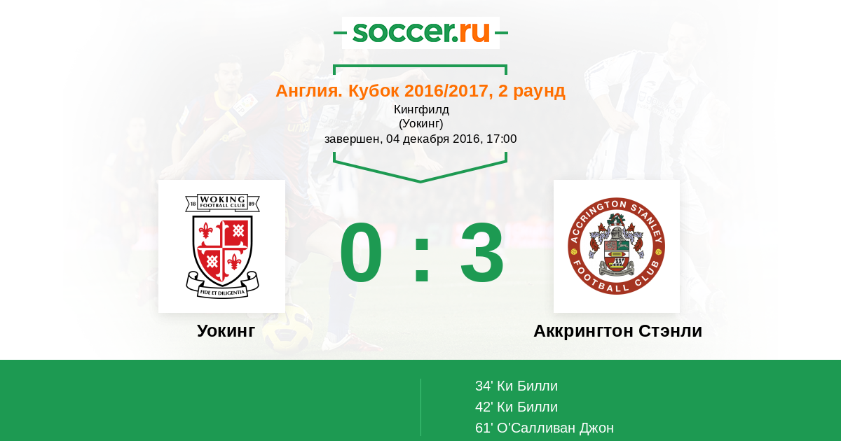 Протокол матча Уокинг против Аккрингтон Стэнли