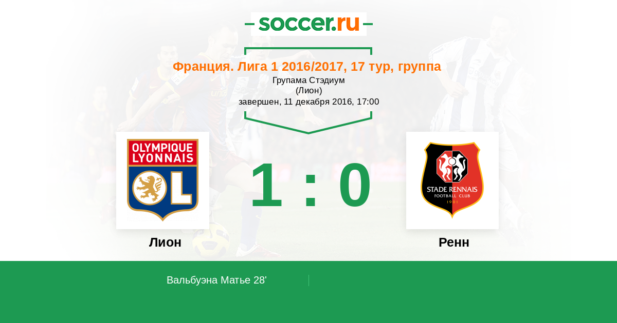 Протокол матча Лион против Ренн