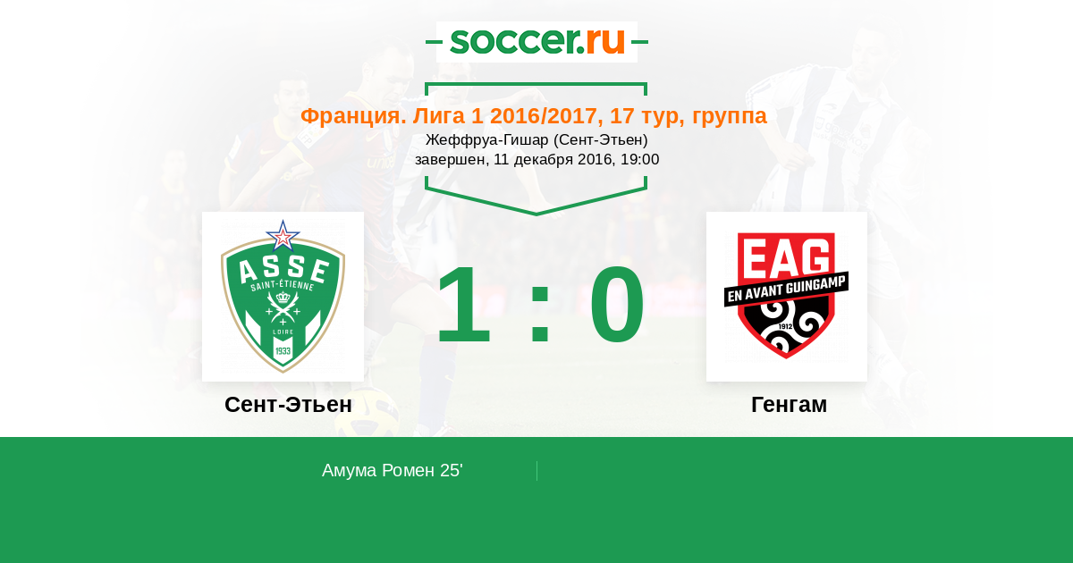 Протокол матча Сент-Этьен против Генгам