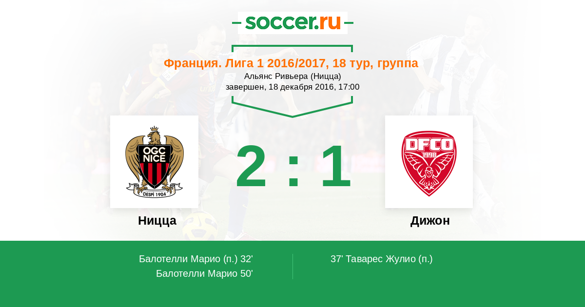 Протокол матча Ницца против Дижон