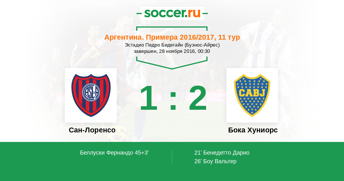 Протокол матча Сан-Лоренсо против Бока Хуниорс