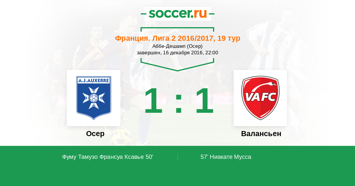 57' (1:1) Ниакате Мусса (15) (Руде Себастьян (10))