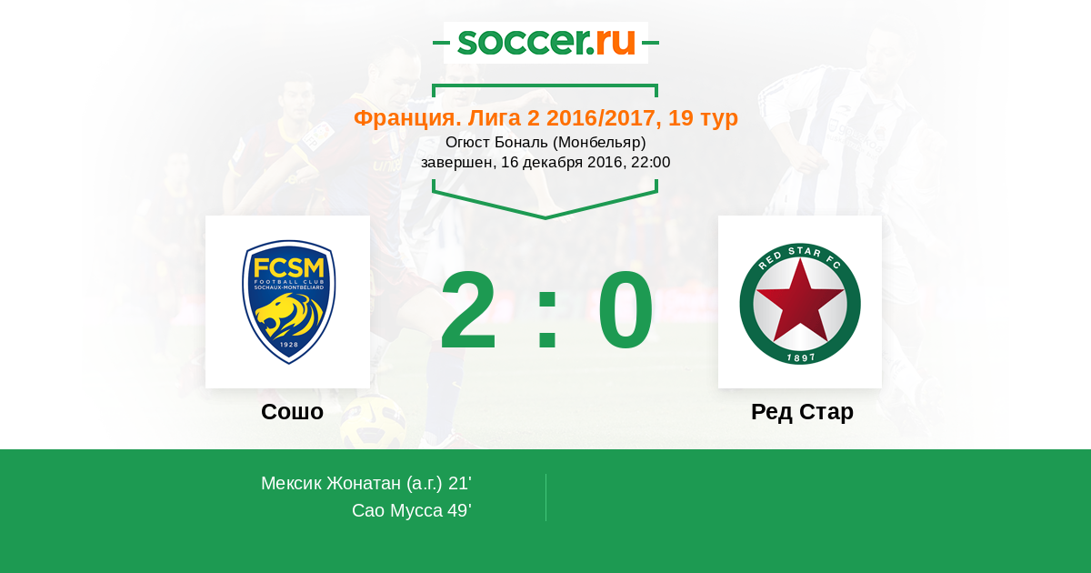 Протокол матча Сошо против Ред Стар