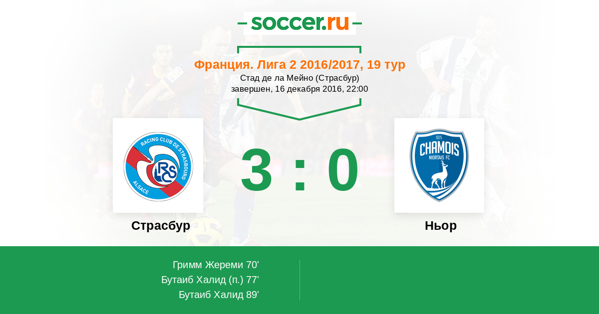 Протокол матча Страсбур против Ньор