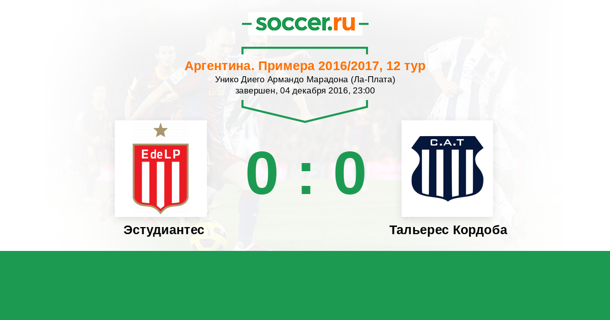 Протокол матча Эстудиантес против Тальерес Кордоба