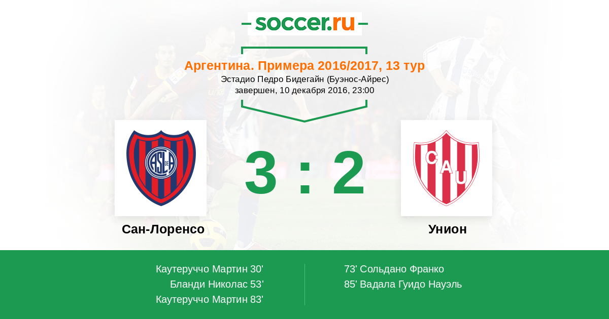 Протокол матча Сан-Лоренсо против Унион