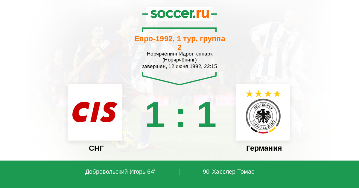 Протокол матча СНГ против Германия