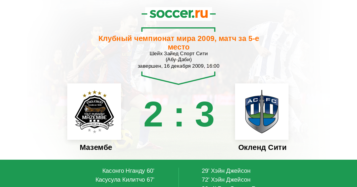 Протокол матча Мазембе против Окленд Сити