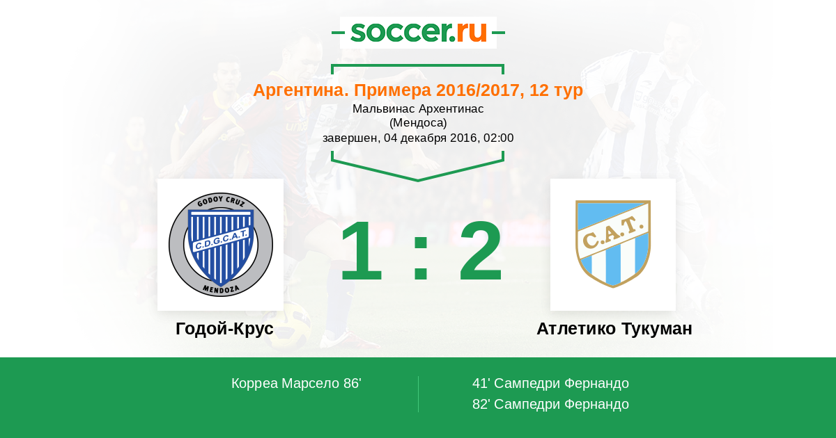 Протокол матча Годой-Крус против Атлетико Тукуман