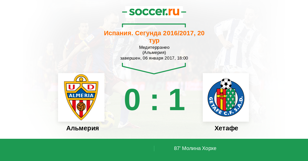 Протокол матча Альмерия против Хетафе